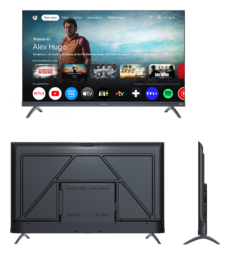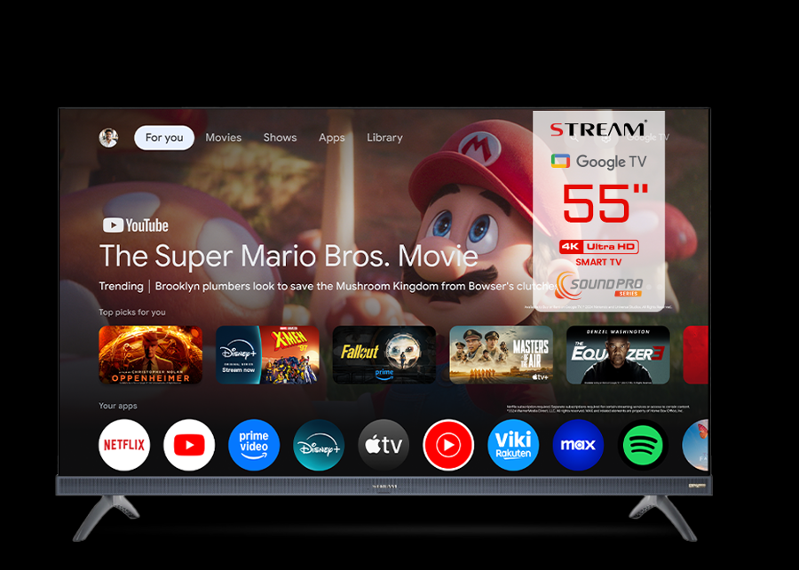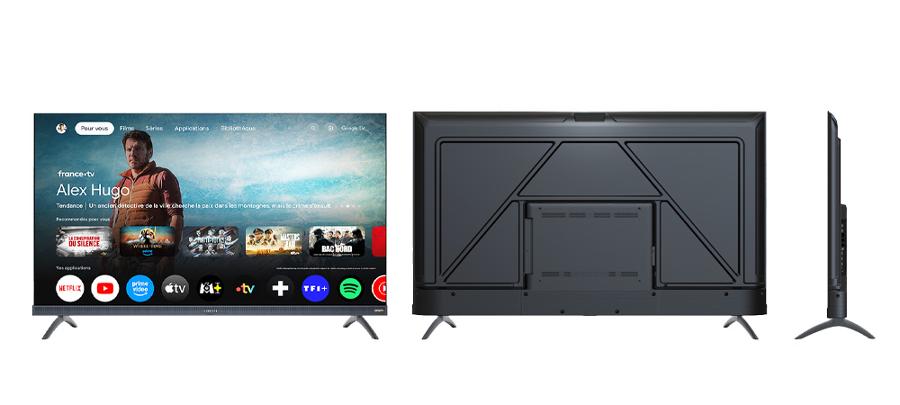 Smart TV STREAM 55" pouces, avec le système d'exploitation Google TV (certifié par Google) Android 14, qui offre une plateforme de divertissement personnalisée, grâce aux recommandations de votre profil personnel. La fiche technique ci-dessous correspond au produit de référence S55GTUSPRO ; il peut être indiqué qu'il existe des différences de prix pour les retours de