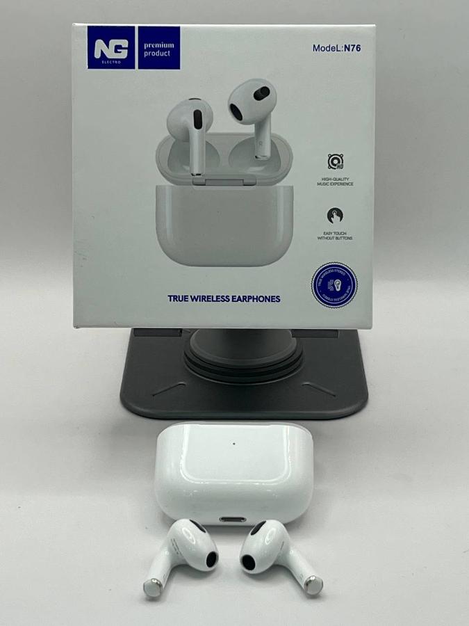 Les NG Electro Modèle N76 présentent un design épuré et moderne, inspiré des écouteurs true wireless haut de gamme. Leur boîtier lisse et minimaliste s’associe à des écouteurs légers offrant une excellente expér