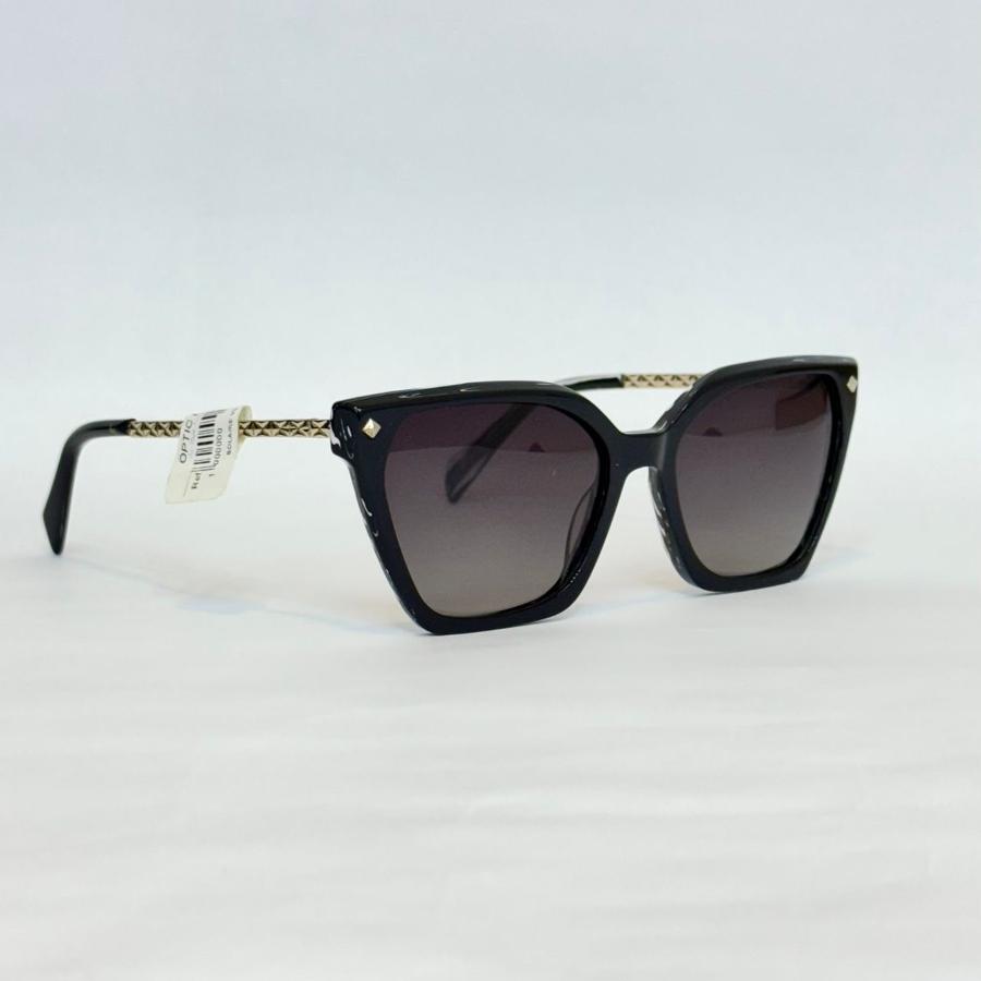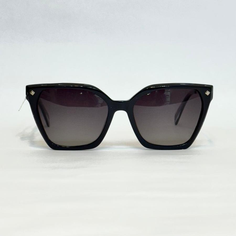 Ce modèle Viva Luxe présente une monture noire épurée au style carré modernisé par une légère touche papillon. Les verres gris dégradés apportent une élégance sobre tout en assurant une protection visuelle agréable. Les détails métalliques sur les coins ajoutent une note raffinée, faisant de cette paire un choix parfait pour un look chic et polyvale