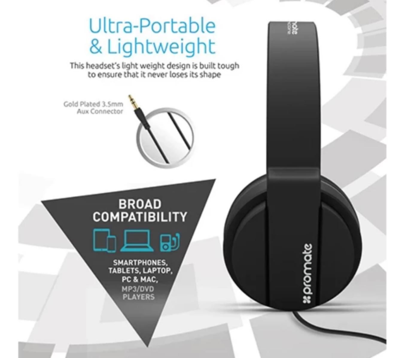 Casque Promate ENCORE Noir Wired Headset ENCORE est équipé de casques circum-aural ouverts haut de gamme pour une projection exceptionnelle des graves et des voix. la conception légère de ce casque est conçue pour ne jamais perdre sa forme. le serre-tête doux et pliable et les oreillettes résistantes à la sueur assurent un confort optimal sans encombrement. l’annulation passive du bruit vous permet de profiter de votre piste préférée sans la perturbation. Le cache-oreilles rembourré doux et confortable est recouvert d’une mousse épaisse, qui exprime une sensation d’oreiller doux et sans fardeau après de longues sessions d’écoute. Il est délibérément résistant et durable : aucune quantité de saisie, d’écrasement et de flexion ne va l’endommager. Sonic répond aux exigences de toutes les tailles de tête. De plus, le cache-oreilles rembourré doux et confortable vous aide également à minimiser la fatigue. Avec le Promate Encore, vous n’avez pas à vous soucier des câbles noués. Le câble est spécialement conçu pour résister à l’emmêlement, vous pouvez donc les ranger comme vous le souhaitez et les tirer tout droit, prêts à l’emploi lorsque vous en avez besoin La conception fermée réduit le bruit ambiant, vous pouvez donc plonger vos oreilles dans votre musique – limitant une grande partie de l’environnement bruyant autour de vous. Maintenant, vos rythmes et seulement vos rythmes sont à vous. Brand Promate Frequency 2.4GHz Power Input 5V, 1A Speaker Output 3W Impedance 4© Operating Distance 10m Cable Length 1.5m Sensitivity on cable 58dB±2dB