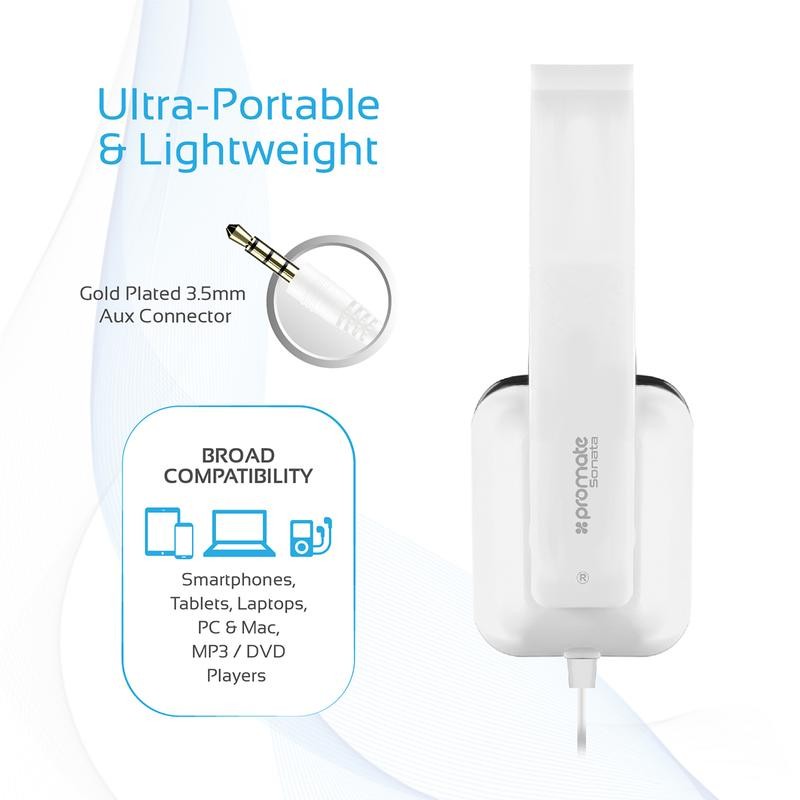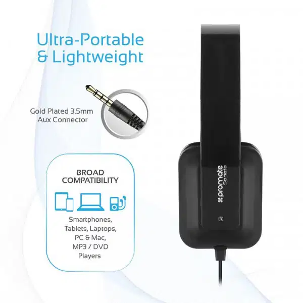Promate Sonata Casque stéréo filaire pliable sur l’oreille