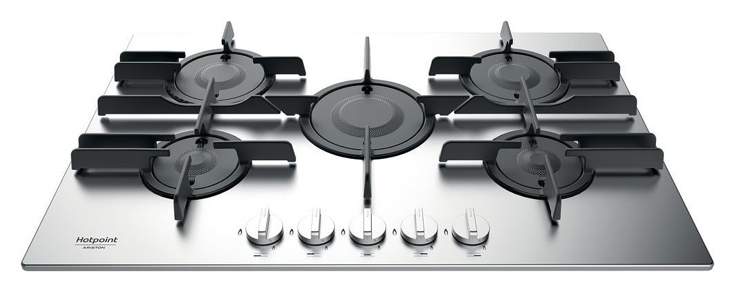 La plaque de cuisson à gaz Hotpoint Ariston FTGHL 751 , en acier inoxydable, a une largeur de 75 cm. La forme plate inhabituelle des 5 brûleurs à gaz se démarque immédiatement grâce à la technologie Direct Flame, qui confère au sol un aspect résolument novateur!