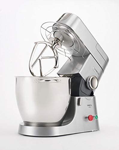 Professionnel : que ce soit en expérimentant ou en créant un plat transmis depuis des générations, Chef XL Pro permet de créer des plats de niveau optimal ; structure en métal moulé sous pression, finition argentée Puissante : pétrin planétaire avec une puissance de 1700 W et un grand bol en acier inoxydable avec poignées de 6,7 L pour une excellente action de mélange et de pâte Mouvement planétaire : le mouvement spécial permet de mélanger, mélanger et pétrir au mieux les ingrédients pour des résultats de vrais chefs 3 crochets de mélange : fouet K pour ingrédients secs, crochet pétrisseur pour faciliter le traitement du pain, des pizzas et des focs, fouet à fil pour préparer des composés mousseux moelleux Équipement : grille de protection amovible en acier inoxydable. Pieds antidérapants