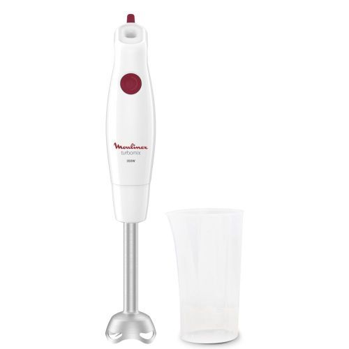 Doté d'une puissance de 350 W pour des résultats parfaits sans effort, le mixeur plongeant Turbomix de Moulinex a été conçu pour répondre à tous vos besoins de mixage. Ce mixeur plongeant facile à utiliser dispose d'un bouton unique pour contrôler la vitesse et assurer un mixage optimal pour tous les types d'ingrédients. Le pied mixeur dispose de deux lames inox de haute qualité (technologie "ZELKROM") pour garantir des résultats onctueux et homogènes. Grâce à ses fonctions pratiques spécialement conçues pour faciliter la cuisine du quotidien, le mixeur plongeant Turbomix de Moulinex vous permet de préparer une grande variété de délicieuses recettes Il dispose d'un bouton unique pour contrôler la vitesse et assurer un mixage optimal pour tous les types d'ingrédients. Les lames inox technlologie ZELKROM assurent une durabilité optimale. Des fonctionnalités pratiques viennent compléter ses performances. Eléments amovibles compatibles au lave-vaisselle, poignée ergonomique dotée d'une surface texturée pour un confort maximal. En fin, le mixeur plongeant Turbomix est équipé d'une protection anti-éclaboussure, pour mixer et mélanger sans salir votre plan de travail et ainsi vous simplifier la vie en cuisine. Mixeur plongeant Moulinex Turbomix : facile à utiliser pour des résultats parfaits et rapides Résultats rapides grâce à sa puissance de 350 W Mixeur plongeant facile à utiliser : un bouton unique pour contrôler la vitesse et mixer tous types d'ingrédients Facilité de nettoyage : pièces amovibles compatibles au lave-vaisselle pour un nettoyage sans effort. Durabilité : mixeur avec 2 lames inox technologie "ZELKROM" pour des performances durables dans le temps Confort d'utilisation : une poignée ergonomique avec une surface texturée pour une expérience de mixage facilitée et plus agréable au quotidien Moins de salissures : un pied métal anti-éclaboussure pour éviter les projections et les salissures